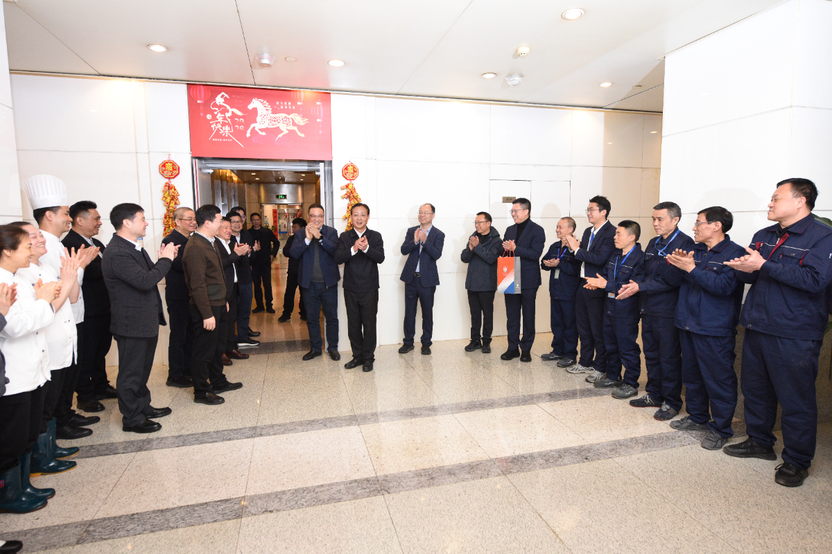 浙能集團領導班子給集團本部全體職工拜年鼓干勁。 顧明杰 攝